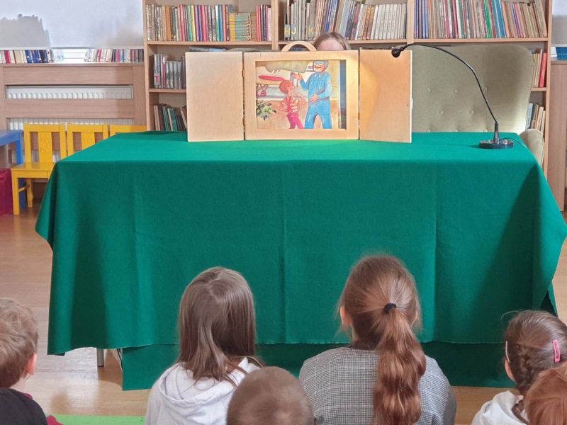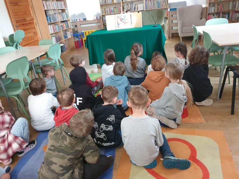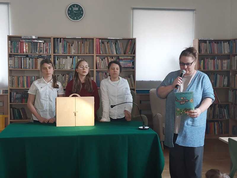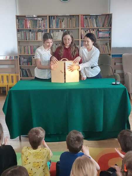 Wiosenna odsłona japońskiego teatrzyku kamishibai w naszej bibliotece szkolnej. Teatrzyk zamknięty w drewnianej skrzynce butai znów się otworzył, a karty z ilustracjami zaprosiły w świat niezwykłych opowieści.